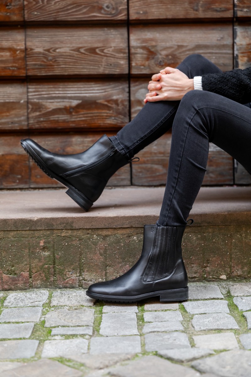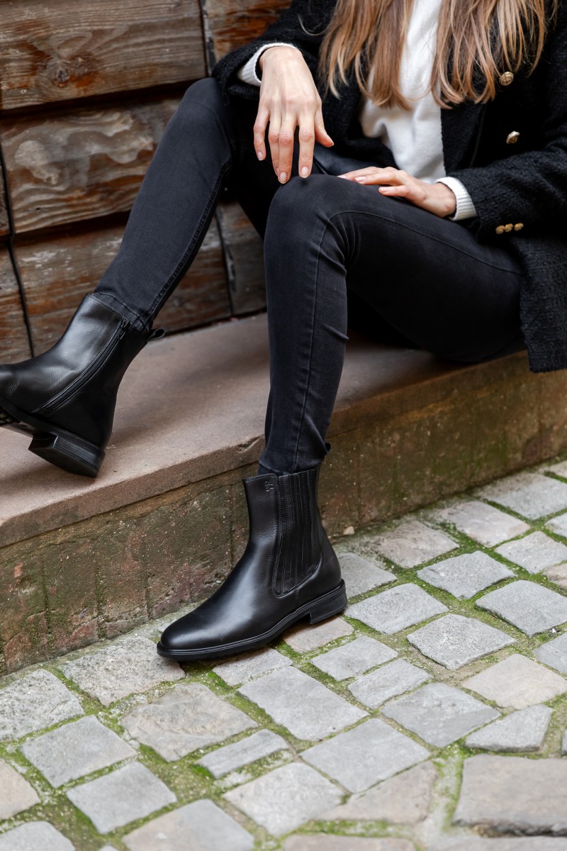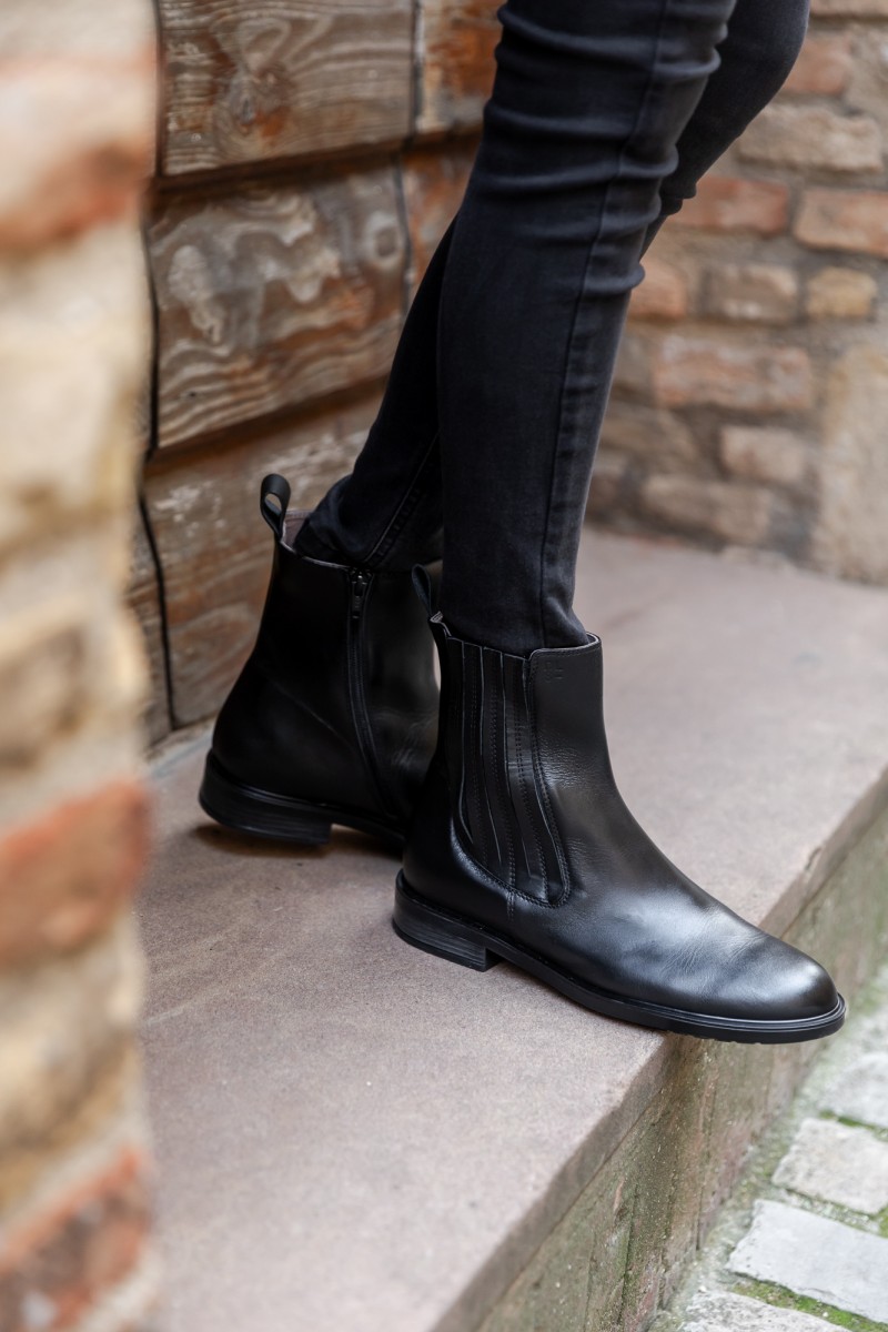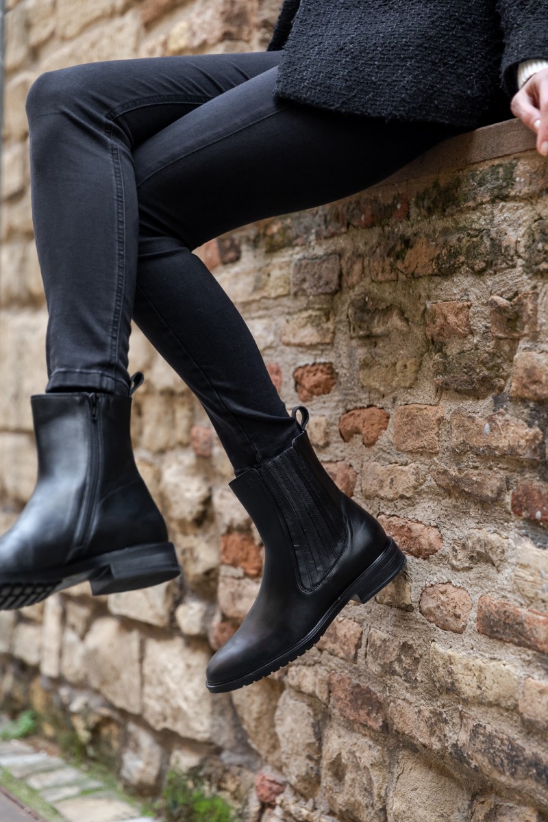 Petra allie élégance, raffinement et confort dans un design féminin et contemporain. Réalisé en cuir de veau lisse et caractérisé par un élastique recouvert, la combinaison des matériaux crée une texture sophistiquée et distinctive. Le petit talon le rend pratique et confortable au quotidien, sans sacrifier le style. Ses lignes épurées et élégantes le rendent polyvalent : idéal avec un pantalon cropped ou droit, une jupe midi ou une robe en maille pour un look sophistiqué et contemporain. La couleur noire classique met en valeur la qualité des matériaux et son élégance raffinée, faisant de Petra un allié précieux pour chaque tenue soignée.