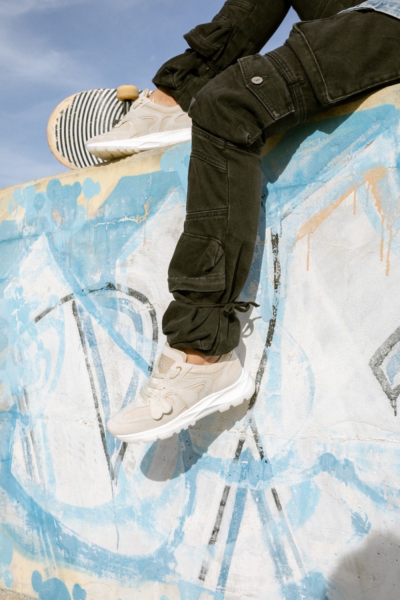 Un mélange délicat de cuirs dans des tons clairs d’ivoire s’allie à des textures superposées pour créer un motif dynamique qui reflète l’énergie de la vie urbaine. Avec une semelle running moderne qui offre confort et caractère, la Renovo Haze est sublimée par un charm en cuir en forme de cœur, un petit détail puissant qui ajoute de la personnalité à chaque pas.