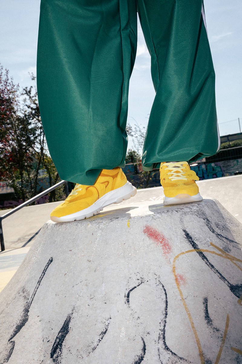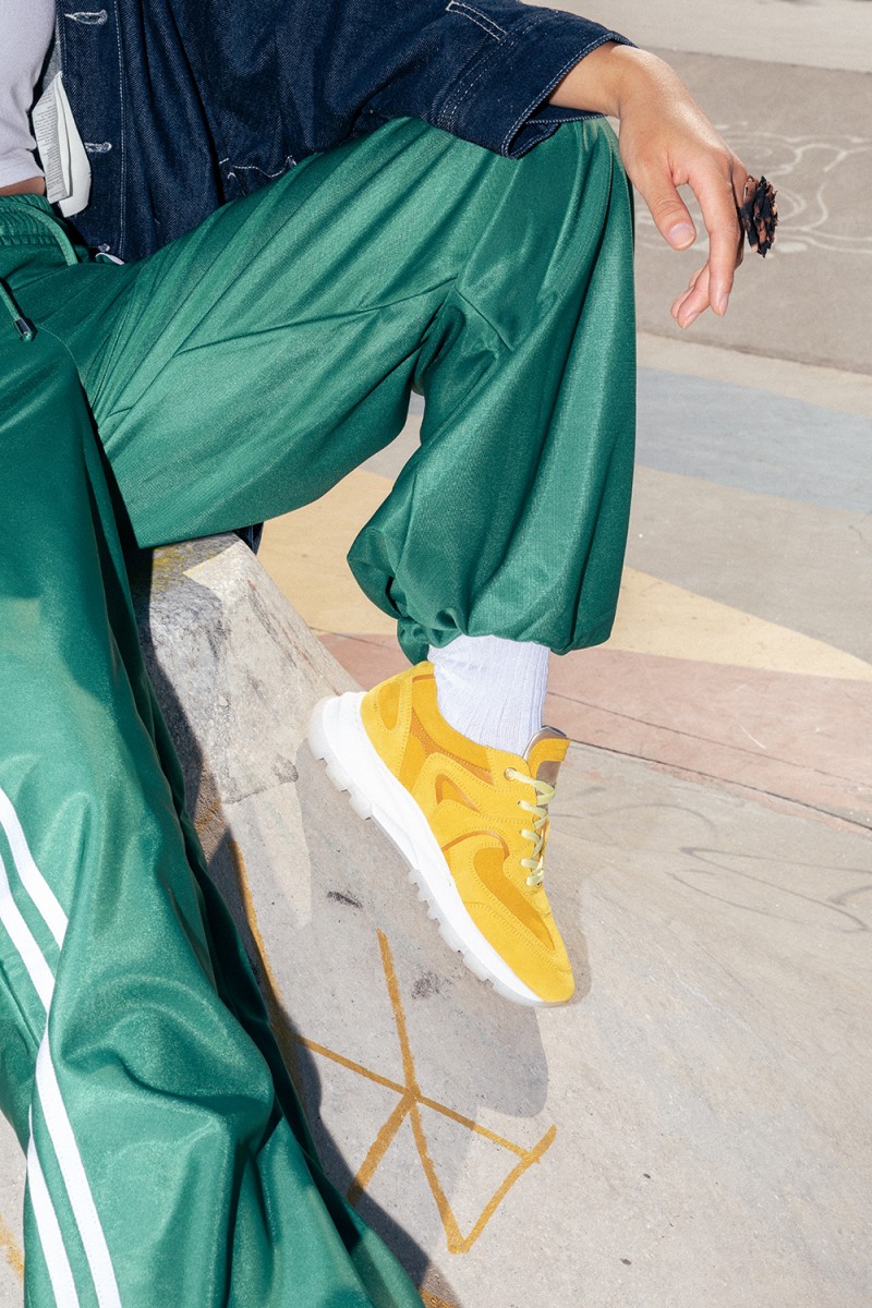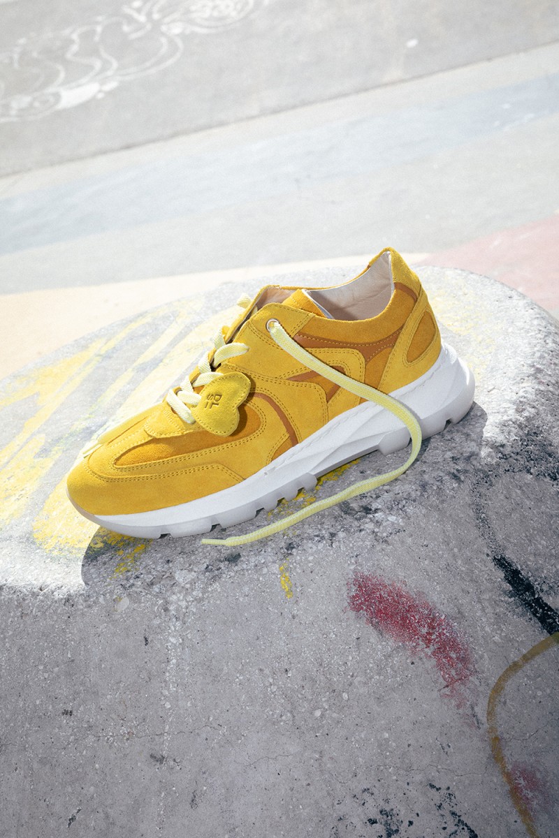 Un mélange audacieux de jaune et de nuances de cuir s’allie à des textures superposées pour créer un motif dynamique qui reflète l’énergie de la vie urbaine. Avec une semelle running moderne qui offre confort et caractère, la Renovo Spark est sublimée par un charm en cuir en forme de cœur, un petit détail puissant qui ajoute de la personnalité à chaque pas.