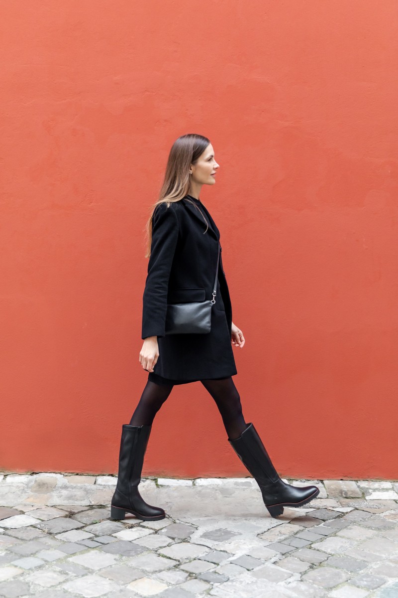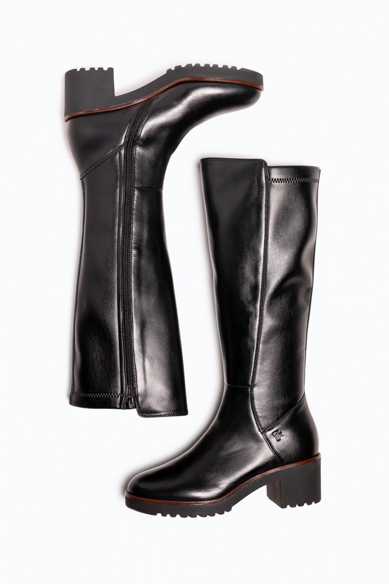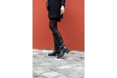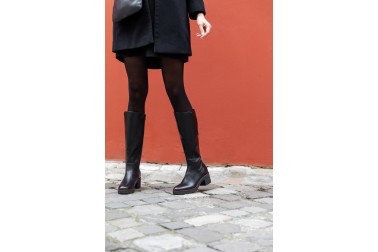 Handcrafted in Italy from premium smooth and stretch calf leather, the Jackie boot expresses timeless feminine elegance. The quality of the materials and artisanal craftsmanship ensure comfort and an impeccable fit. The shaft gently wraps the leg, enhancing the silhouette, while the heel adds height and poise. The always-trendy black finish completes a refined and versatile design, enhanced by the printed DLS logo, a symbol of authenticity and style.