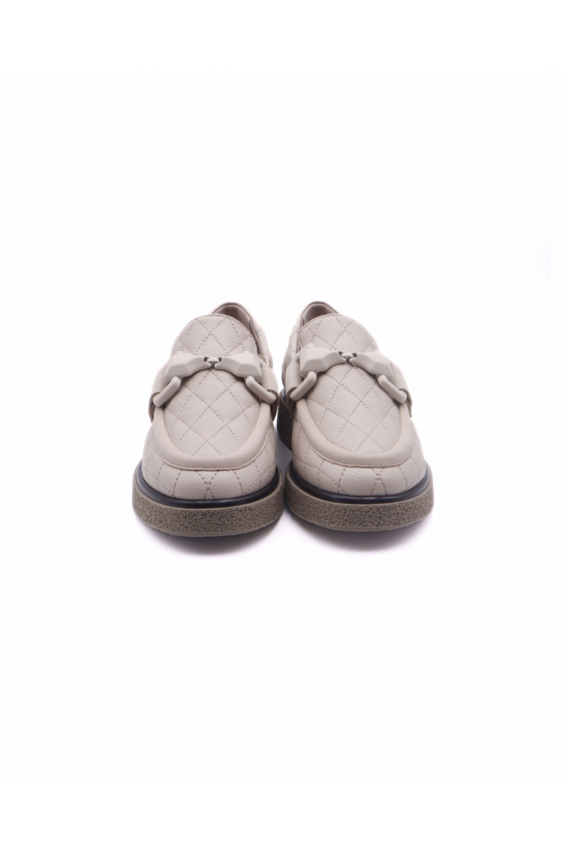 The Ada loafer, made of fine tumbled calfskin, is the epitome of refined and timeless elegance. The delicate embroidered beige colour adds a touch of exclusivity to the design, making it easy to match with any kind of look, from casual to more sophisticated. The bottom is designed to ensure a comfortable and stable fit throughout the day, thanks to a sole that combines functionality and durability without compromising on style. Handcrafted in Italy, the Ada loafer represents the quality and innovation of Italian design, bringing a versatile, durable and classy accessory to your wardrobe.