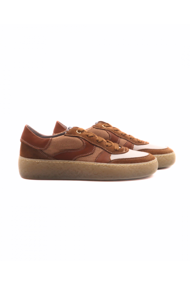 The Cindy sneaker features a modern and trendy design, crafted from a mix of calf leather, suede, and fabric, creating a unique and original texture. The main color, brown, gives this shoe a versatile character, perfect for casual and street looks. With its essential lines and contemporary design, it’s a must-have for those looking for a fresh and fashionable style. Perfect with skinny jeans, cargo pants, or tracksuits for a casual-chic look, but also pairs well with a long skirt or a sporty dress for a more feminine touch. Cindy is the ideal choice for combining comfort and fashion on any occasion.