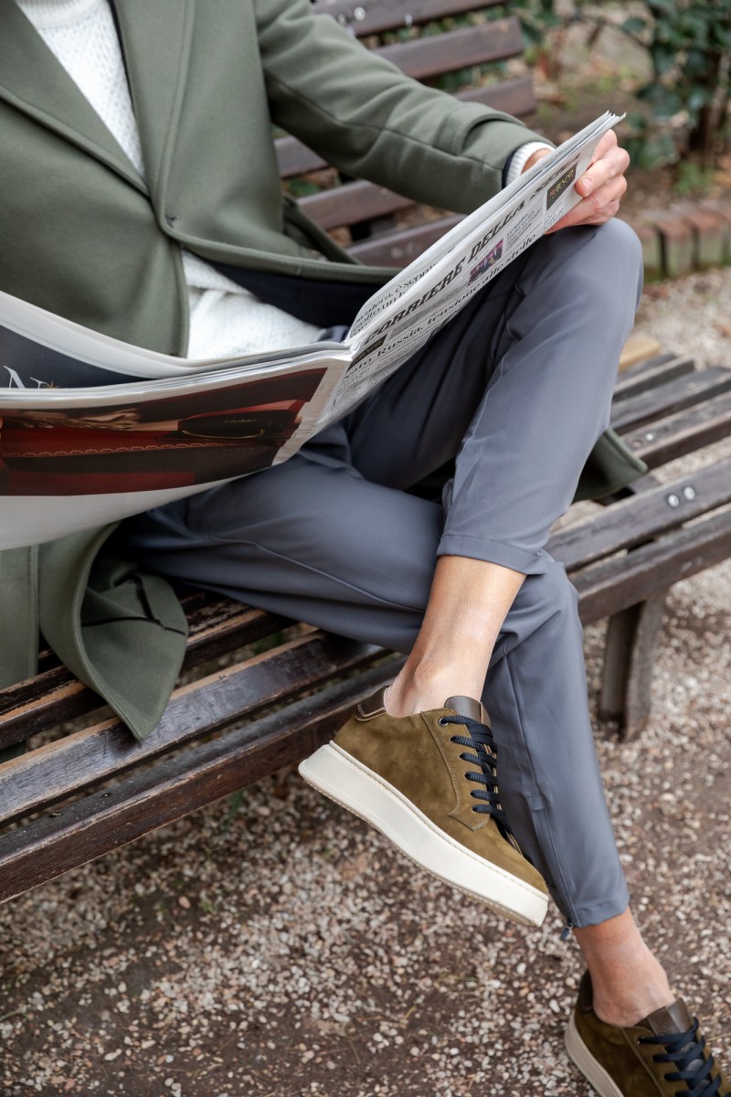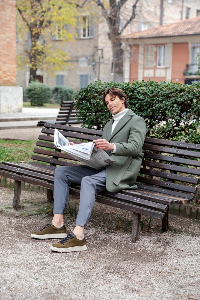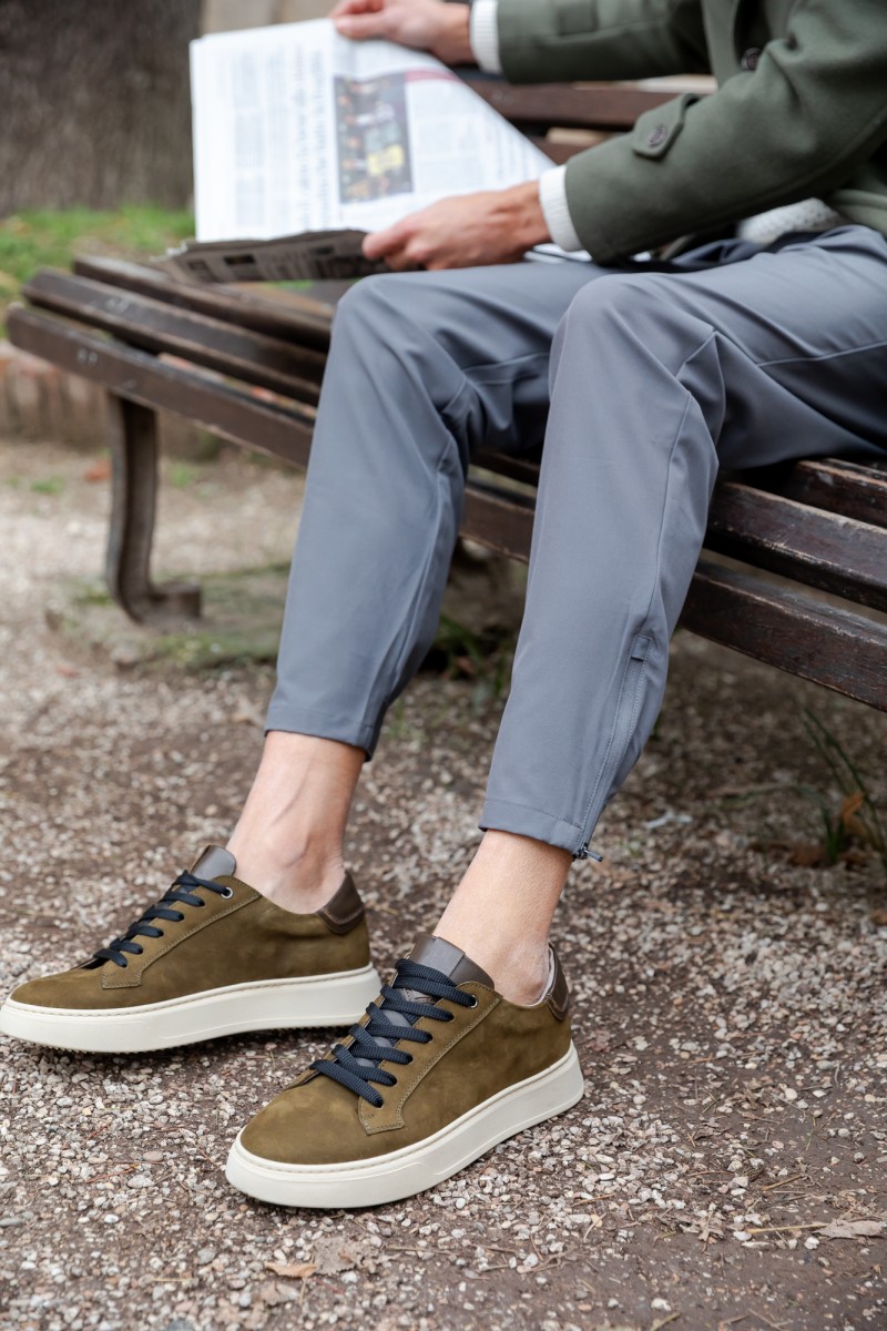 The Aaron sneaker is a handcrafted model made with high-quality materials and contemporary design. The nubuck and calfskin leather upper creates a rich, sophisticated texture, while the black laces highlight the shoe’s color tones, giving it character and personality. The stitched box sole ensures all-day comfort and stability, making it ideal for those seeking a casual, modern sneaker with refined elegance. Aaron pairs perfectly with jeans or smart-casual looks, but can also complement more sophisticated outfits with blazers or light jackets, striking a balance between urban style and modernity. The quality materials and artisanal attention to detail make this sneaker a versatile and stylish addition to any men’s wardrobe.