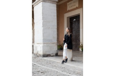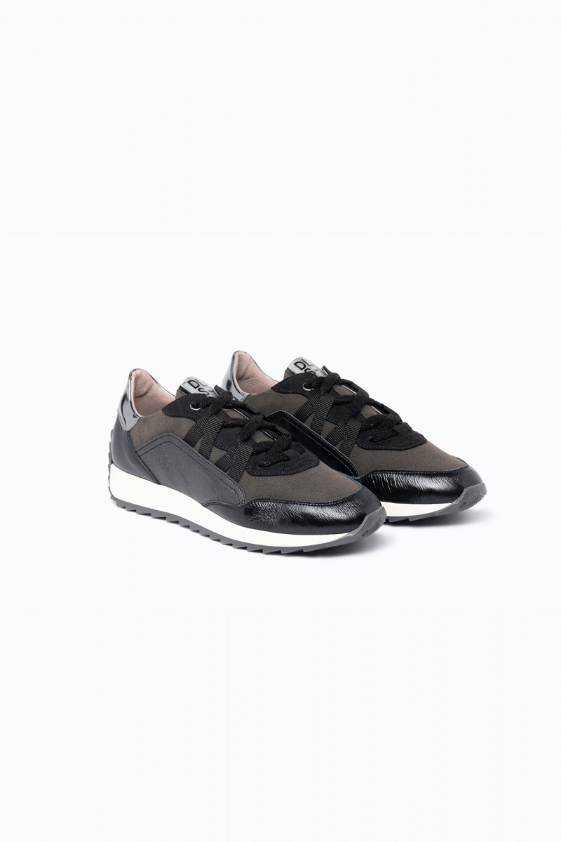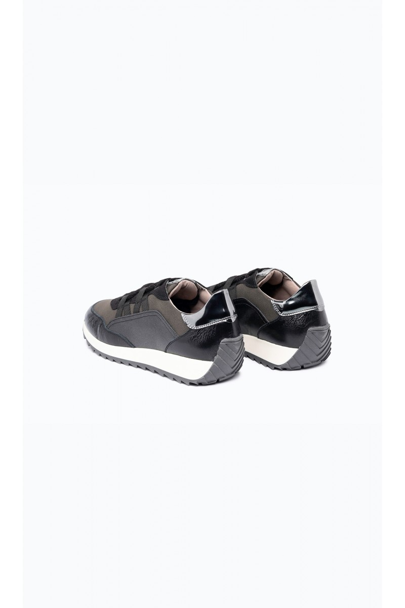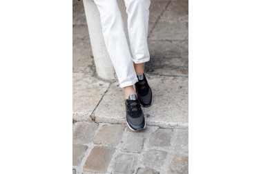 The Olga sneaker blends modernity with refined, feminine design. Its calfskin leather and technical material upper create a rich texture with glossy contrasts and a mix of materials, while the lace loop adds a trendy and glamorous touch. The running sole ensures all-day comfort and practicality. Available in black and silver tones, it offers a sophisticated, seasonal glow. Olga is the perfect choice for those seeking a modern, elegant, and feminine sneaker.