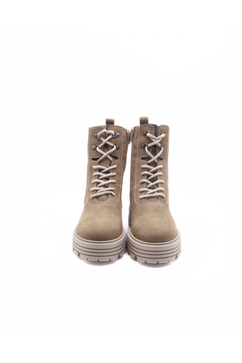 Lo stivaletto Giada è un’interpretazione moderna della tradizione artigianale italiana, pensato per chi cerca un design raffinato ma pratico. Realizzato in morbida pelle nubuck color taupe, il modello si distingue per la sua eleganza discreta, facile da abbinare a qualsiasi look, dal più casual al più sofisticato.I lacci in cordino cotone aggiungono un tocco moderno e dinamico, mentre le cuciture in rilievo, ben visibili sulla tomaia, sono l’espressione di un'accurata lavorazione artigianale che conferisce al modello un carattere unico. La cura dei dettagli si riflette anche nel fondo carro, che non solo assicura un comfort eccezionale, ma porta anche un tocco di design contemporaneo, ideale per chi cerca praticità senza rinunciare alla classe. Perfetto per le donne dinamiche e moderne, lo stivaletto Giada è la scelta ideale per chi vuole combinare eleganza e funzionalità in ogni occasione.