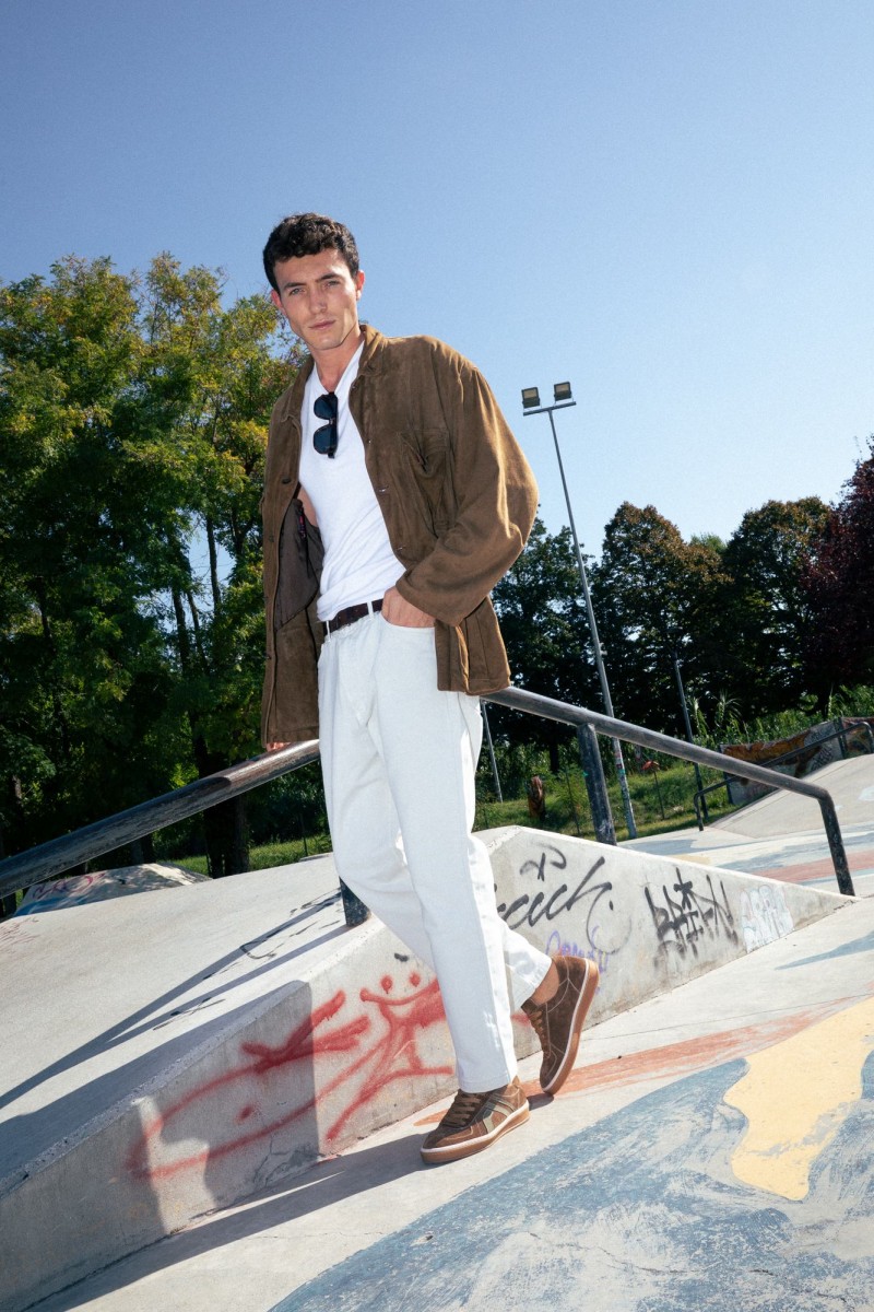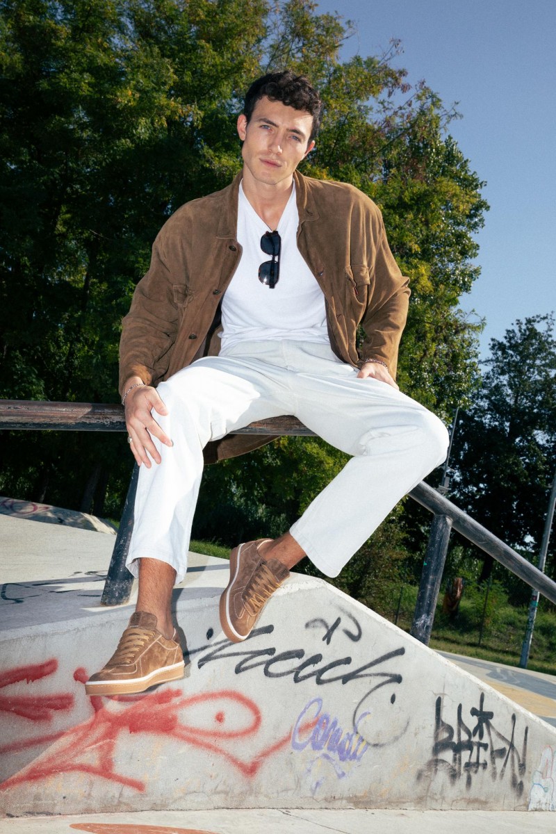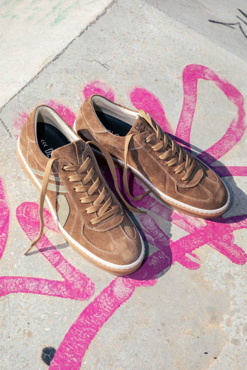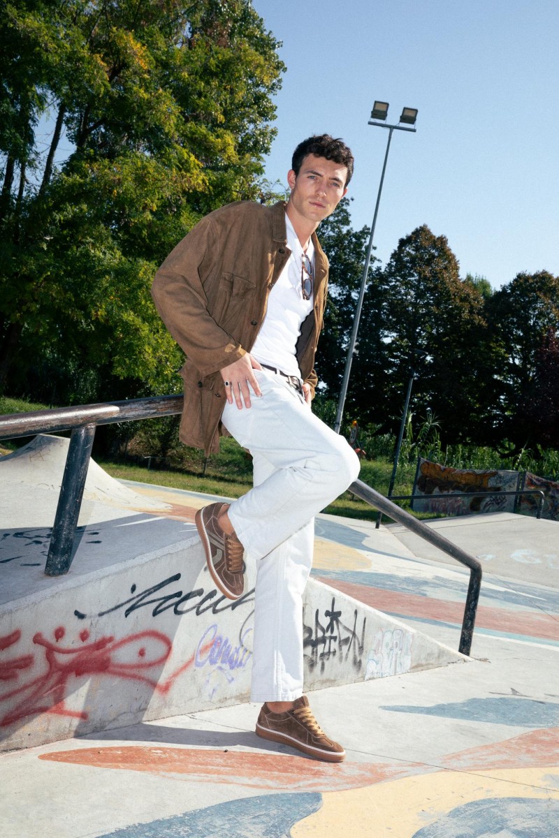 Linee pulite e silhouette minimal definiscono Renovo District, realizzata in pelle nubuck e velour nelle tonalità del marrone e del verde. Il motivo a linee, elemento ricorrente nel linguaggio stilistico di Re.novo, dona un senso di movimento ed energia che richiama il ritmo della vita urbana. La suola leggera con cucitura a vista aggiunge un tocco moderno e distintivo, senza rinunciare al comfort.