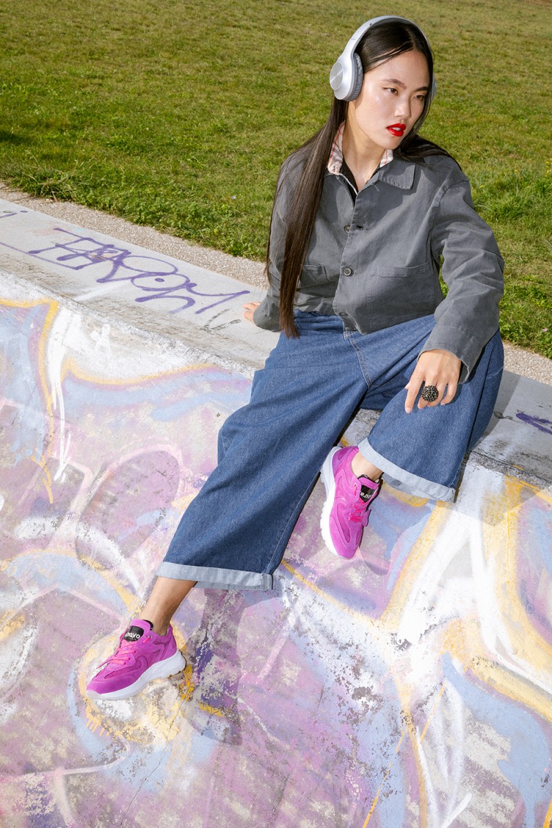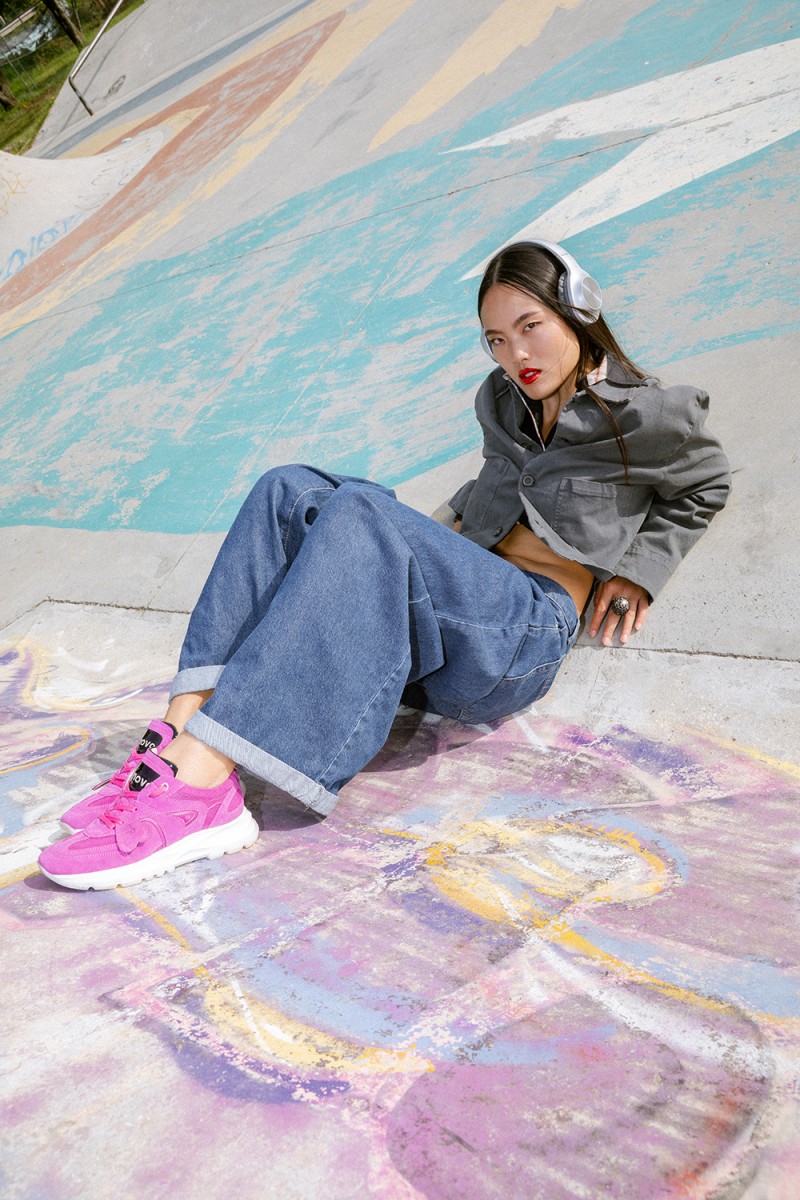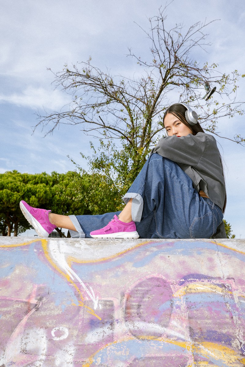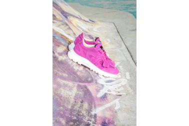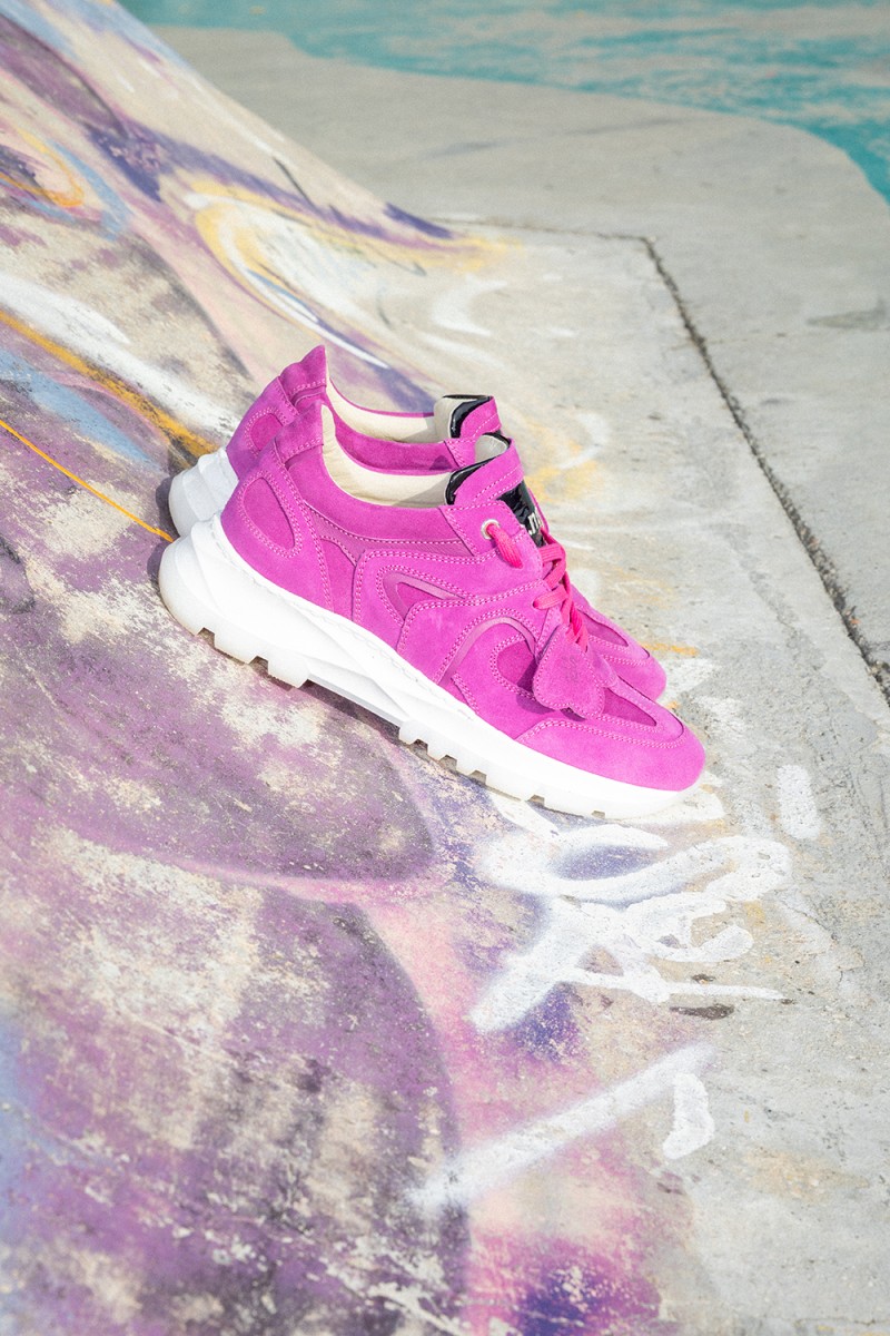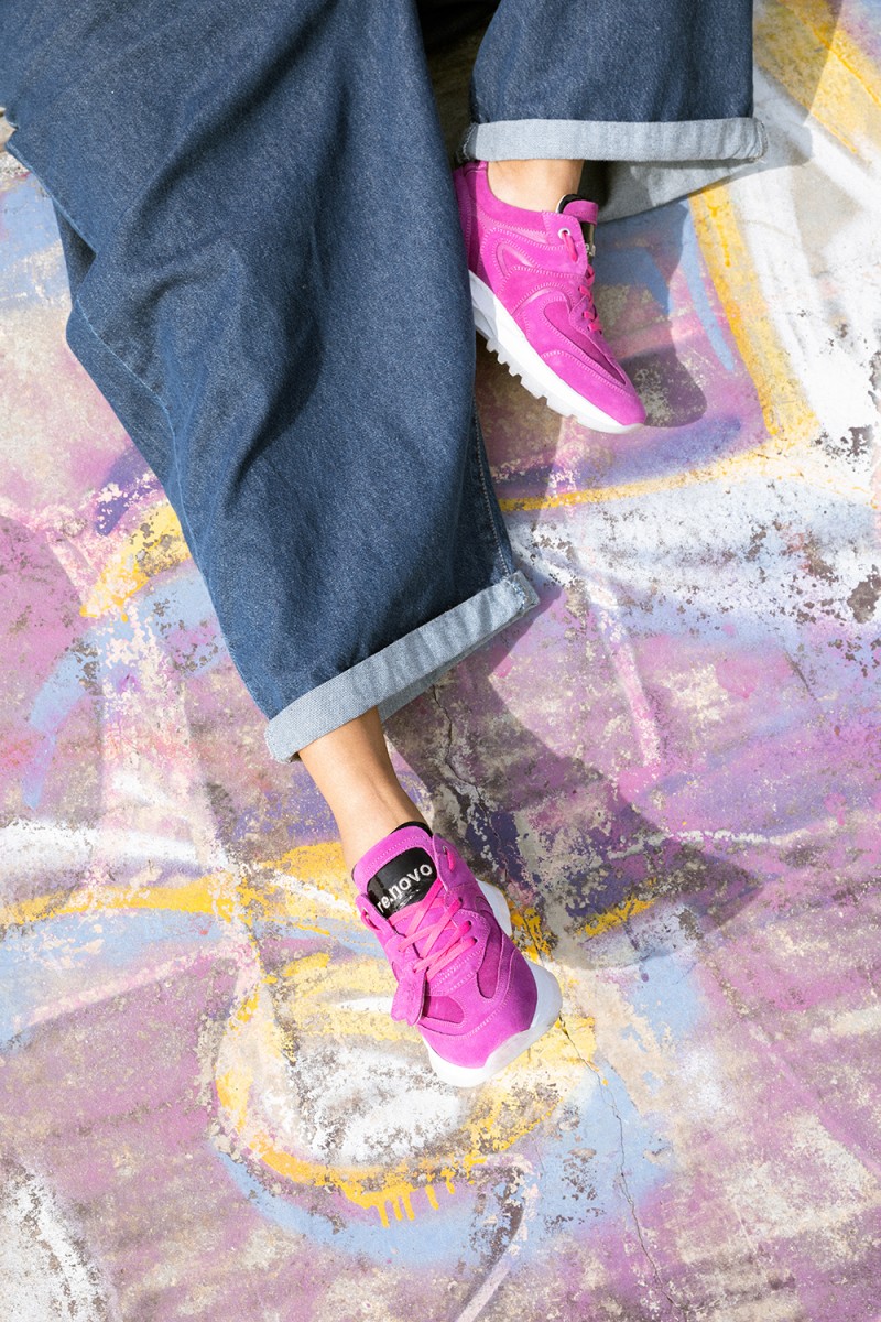 Un audace mix di pellami nelle sfumature del fucsia si combina con texture stratificate che creano un motivo dinamico, riflettendo l’energia della vita urbana. Con una suola running moderna che offre comfort e personalità, la Renovo Neon è valorizzata da un charm in pelle a forma di cuore, un piccolo ma potente dettaglio che aggiunge carattere a ogni passo.