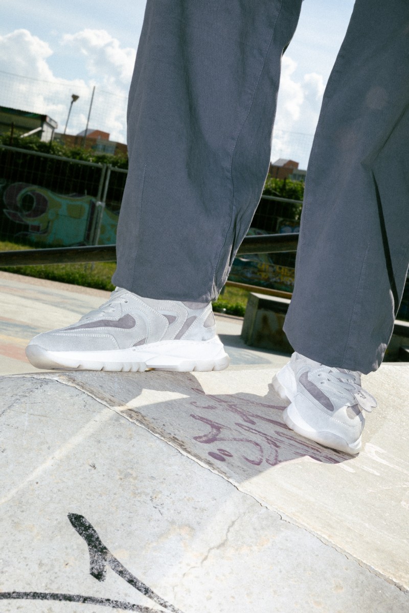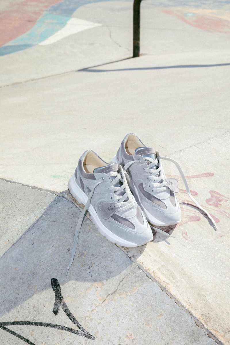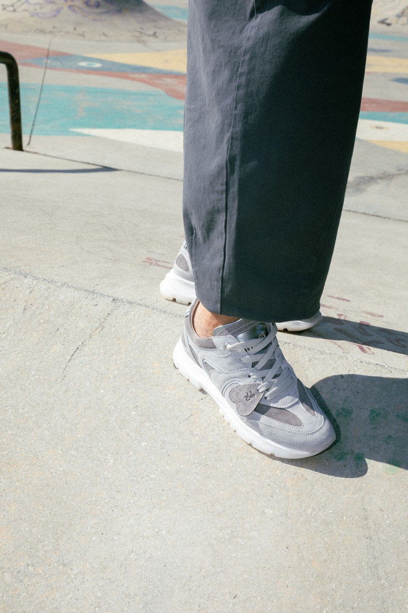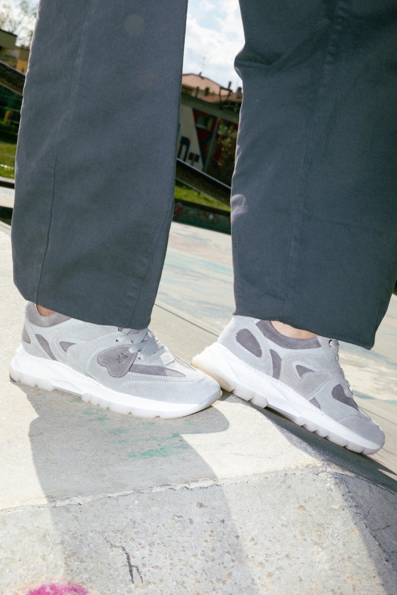Un audace mix di pellami nelle sfumature del grigio si combina con texture stratificate che creano un motivo dinamico, riflettendo l’energia della vita urbana. Con una suola running moderna che offre comfort e personalità, la Renovo Skyline è valorizzata da un charm in pelle a forma di cuore, un piccolo ma potente dettaglio che aggiunge carattere a ogni passo.