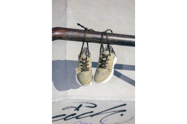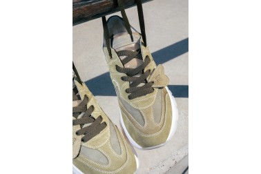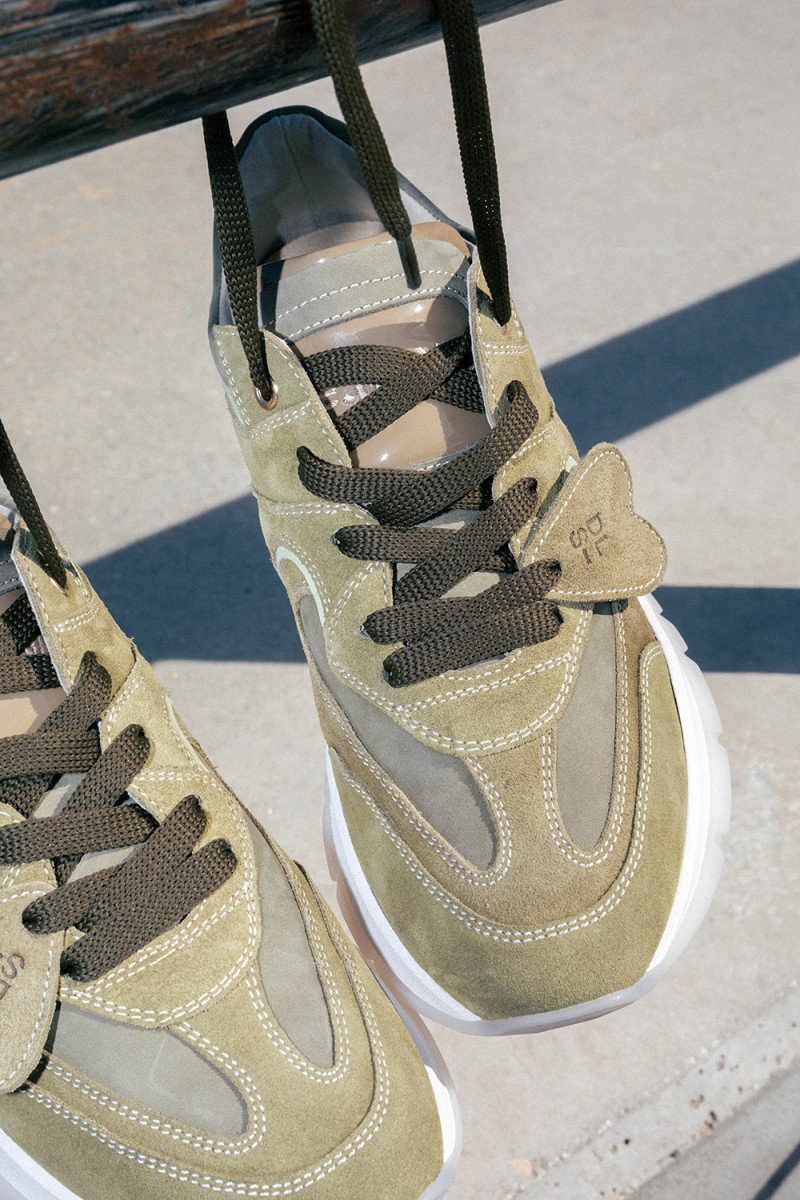 Un audace mix di pellami nelle tonalità del verde si combina con texture stratificate che creano un motivo dinamico, riflettendo l’energia della vita urbana. Con una suola running moderna che offre comfort e personalità, la Renovo Grove è valorizzata da un charm in pelle a forma di cuore, un piccolo ma potente dettaglio che aggiunge carattere a ogni passo.