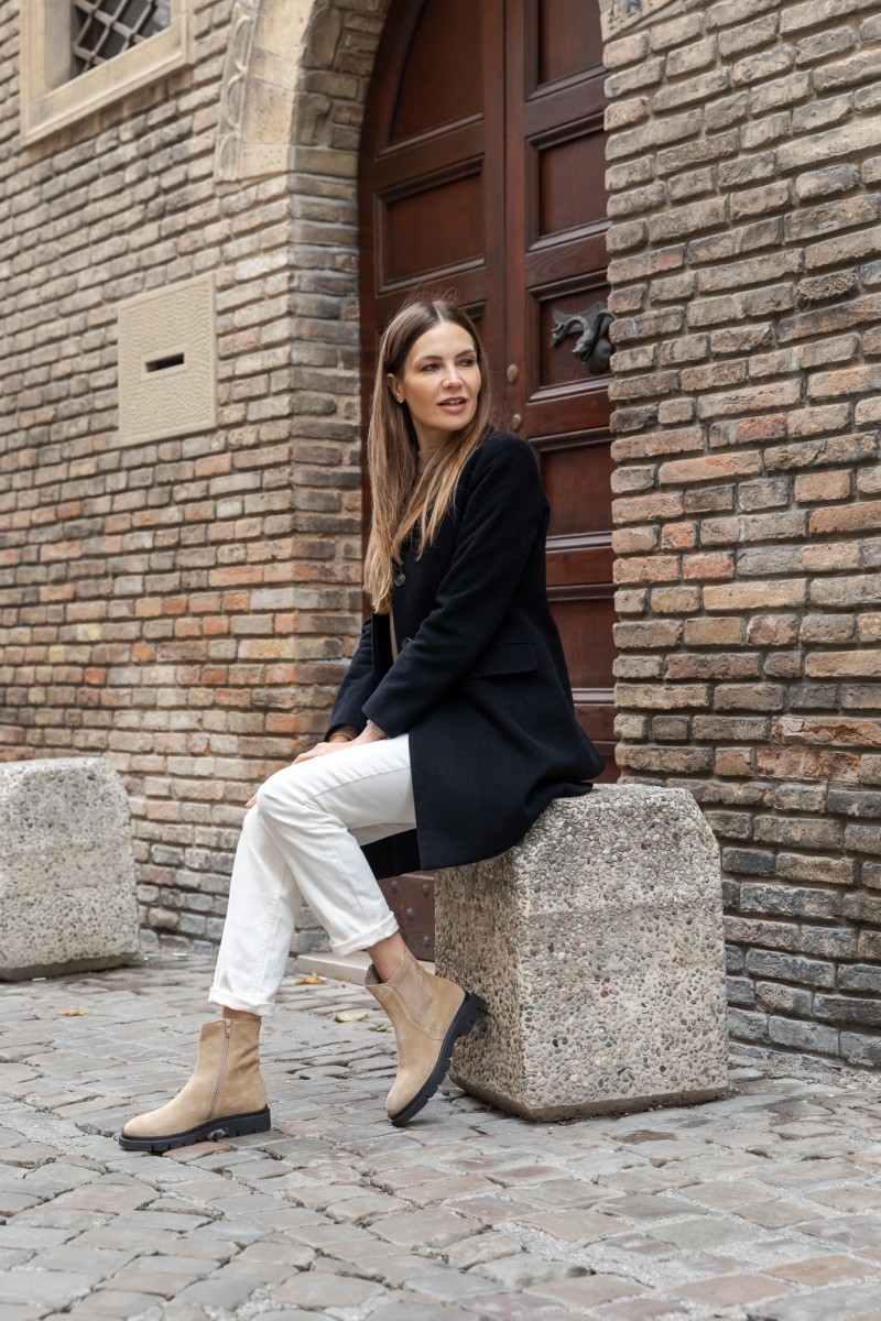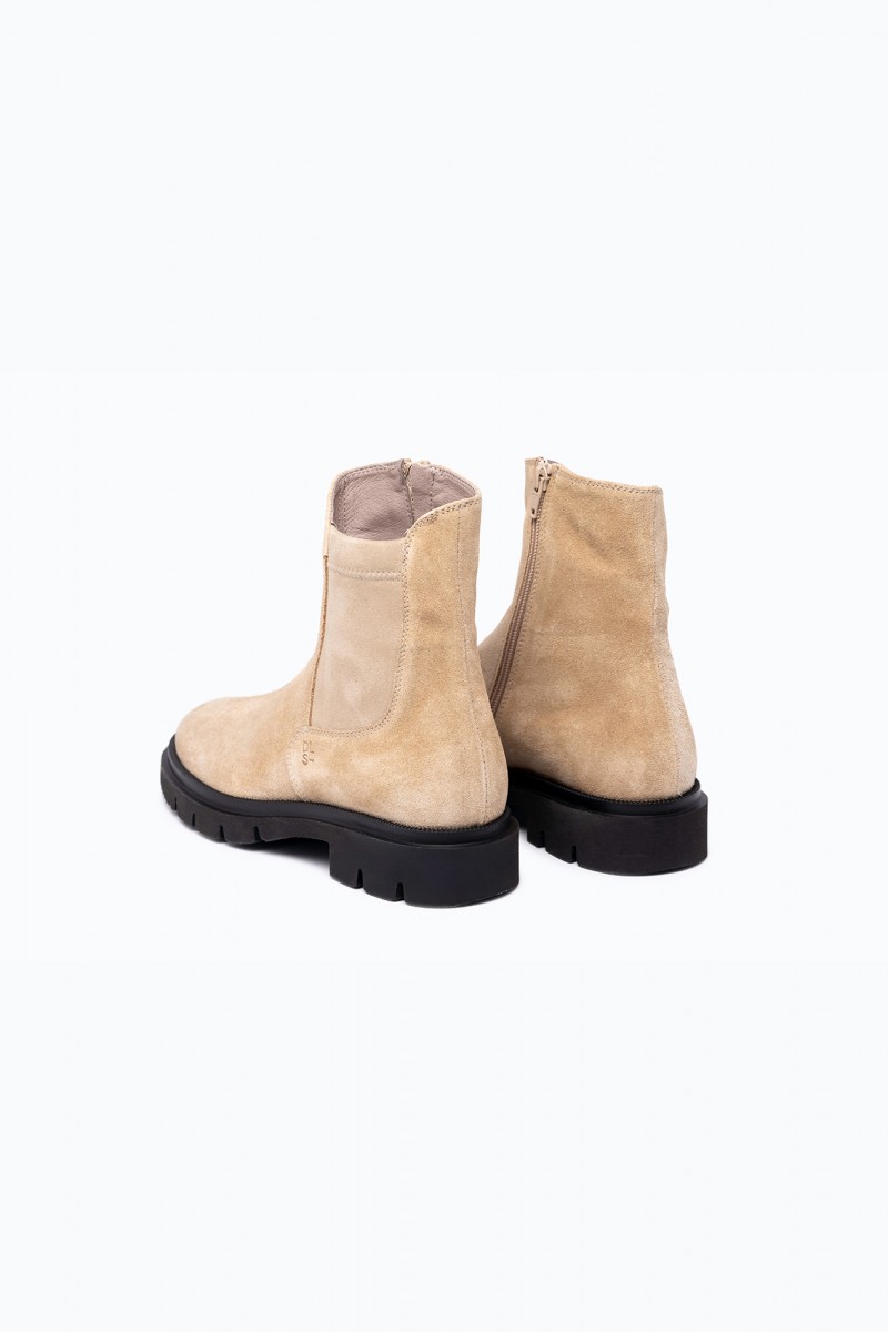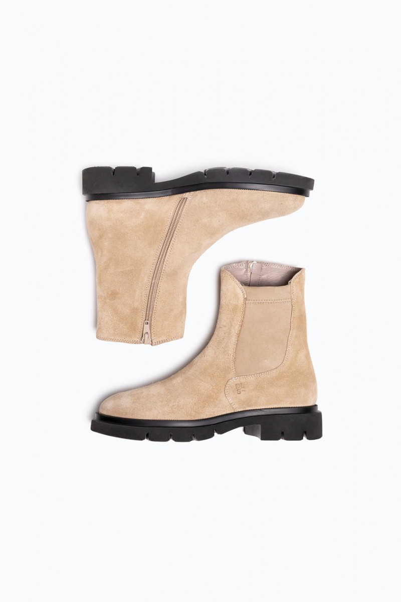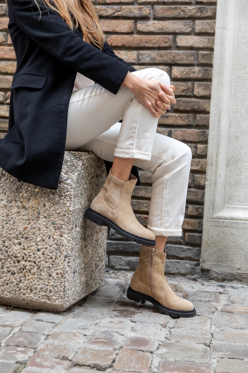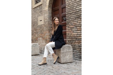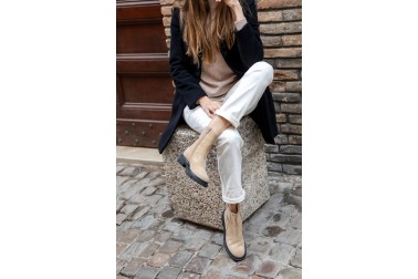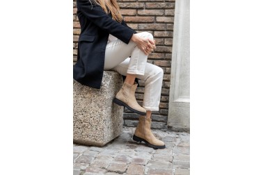 Linee pulite e carattere deciso definiscono il modello Demi, realizzato artigianalmente in Italia in pelle velour e stretch di alta qualità. La texture morbida del velour esalta il colore cammello, raffinato e naturalmente versatile, ideale per accompagnare look dai toni neutri o creare contrasti eleganti. Il fondo leggero e pratico garantisce comfort e libertà di movimento, mentre la comoda zip laterale permette di indossarlo e sfilarlo con facilità. Pensato per un uso quotidiano ma curato, si abbina con facilità a pantaloni cropped, denim o abiti in maglia, aggiungendo un tocco sofisticato e contemporaneo a ogni outfit.